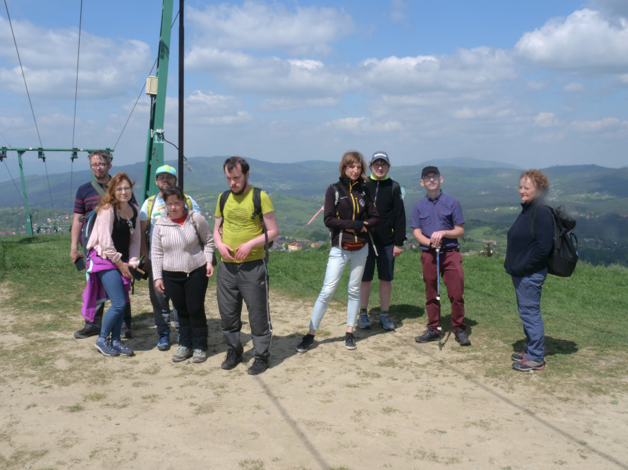 Dzięki gościnności Ewy Biel oba noclegi mieliśmy w jej domku w Cieniawie nieopodal Grybowa. To naprawdę bardzo przytulne miejsce. Z tarasu domku rozpościera się wspaniały widok na panoramę Beskidów. Mieliśmy do dyspozycji kominek, bujane fotele a nawet hamak! Cała nasza ekipa nie była zbyt liczna – 7 osób (3 niepełnoprawnych i 4 wolontariuszy). Ale grunt, że atmosfera była świetna. Pierwsza część z nas dotarła na miejsce po południu zaś ostatni dojechali dopiero o północy. Rano zrobiliśmy sobie wspólnie śniadanie oraz prowiant na drogę. Przed wyjściem Ewa zaparzyła nam znakomitej kawy z cynamonem, kardamonem i goździkami. Wciąż czuję jej aromat:) Spakowani, w dobrych humorach ruszyliśmy w drogę. Najpierw musieliśmy jednak podjechać samochodami około 30 kilometrów do Bielicznej. Tam zaparkowaliśmy i wyszliśmy na szlak. Pogoda była w sam raz na wędrowanie – ani za gorąco, ani za ciepło, bez opadów, z lekkim tylko zachmurzeniem i wiatrem. Na początku drogi natknęliśmy się na starą cerkiew oraz cmentarz. To jedyne pozostałości po nieistniejącej wsi. Uwielbiam takie stare kościółki zagubione pośród gór, pachnące drewnem, pamiętające dawne dzieje. Początkowo trasa wiodła drogą wśród łąk a potem weszliśmy w las, który towarzyszył nam aż do szczytu. Musieliśmy pokonać dwa niezbyt długie, ale dość strome podejścia. Nazwa Beskid Niski może być myląca, ponieważ owszem góry nie są tu zbyt wysokie ale jest sporo ostrych podejść. Cała ekipa jednak świetnie sobie z tym poradziła i po jakiś dwóch godzinach zdobyliśmy najwyższy szczyt Beskidu Niskiego – Lackową, która ma dokładnie 997 metrów wysokości. Pozostał nam jeszcze powrót tą samą drogą. Byłem tylko zaskoczony tym, że na trasie spotkaliśmy kilkunastu turystów. Widocznie coraz więcej osób przyciąga ten klimat. Tuż przed końcem trasy postanowiliśmy rozłożyć się beztrosko na polanie. Skorzystaliśmy z tego, że słońce wyszło i że cel zdobyty. Cudownie było tak podrzemać nie spiesząc się nigdzie, po prostu odpocząć od tego codziennego zgiełku i zabiegania. Człowiekowi czasem naprawdę niewiele potrzeba do szczęścia. Wracając samochodem do miejsca naszego noclegu zahaczyliśmy o piękną, zabytkową cerkiew w Brunarach. Nasz przewodnik Barbara opowiedziała nam o historii tego miejsca. Na koniec owocnego dnia czekał królewski obiad w zajeździe. Noc zaś spędziliśmy na rozmowach i tańcach. A rano czekała nas mała niespodzianka. Niebo zrobiło się bezchmurne i z tarasu naszego domku mogliśmy dojrzeć Tarty w oddali. Po śniadaniu i kolejnej aromatycznej kawie pożegnaliśmy się i szczęśliwi ruszyliśmy do swoich domów.