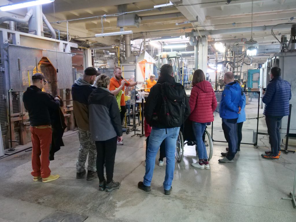 Nasz wyjazd trafił na wiosenną zmianę czasu. Noc była krótsza niż zwykle o całą cenną godzinę snu. Nie spieszyliśmy się zatem zbytnio w niedzielny poranek. Dopiero chwilę przed godziną 11 stawiliśmy się w Piechowicach pod gmachem Huty Szkła Kryształowego “Julia”. Zostaliśmy tam bardzo serdecznie przywitani przez lokalnego gospodarza pana burmistrza Jacka Kubielskiego. “Julia” ze swoją długą historią wzlotów i upadków jest z pewnością wartym do odwiedzenia miejscem przez miłośników industrialnej turystyki. Cały obiekt jest dobrze przystosowany do zwiedzania zarówno przez osoby z niepełnosprawnością układu ruchu jak i osoby niewidome i słabowidzące. Z naszej strony duże podziękowania za zorganizowanie zwiedzania należą się naszemu koledze Piotrowi Jędrzejasowi oraz Bartoszowi Browarnemu i Anecie Cellmer za umożliwienie nam wejścia i przewodnicką opiekę zupełnie za darmo.