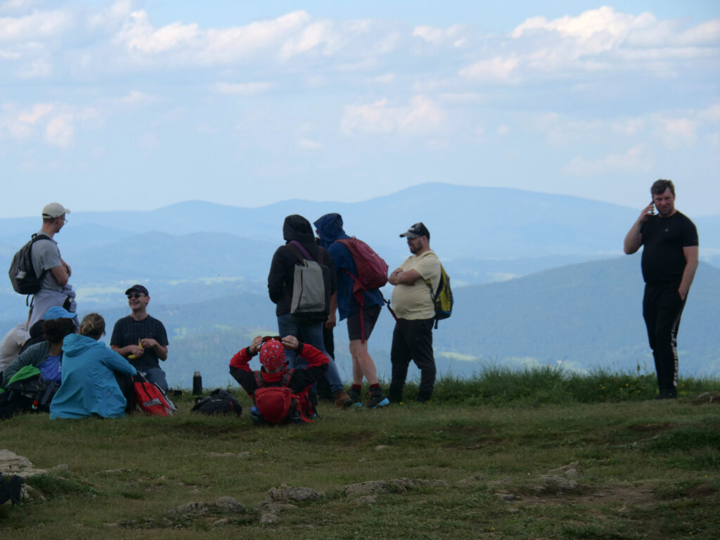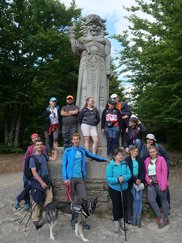 Trzygodzinny trud podejścia pod statuę słowiańskiego bóstwa wynagrodziła nam znajdująca się pod pomnikiem budka sprzedająca orzeźwiające napoje oraz piernikowe smakołykami z pobliskiego Sztramberka. Również sam bóg Radhost przychylnym okiem spojrzał na śmiałków, którzy odważyli się wspiąć się do jego górskiej krainy i pozwolił nam cieszyć się piękną pogodą i widokami, kiedy szeroką i równą drogą maszerowaliśmy dalej na najwyższy wierzchołek masywu.