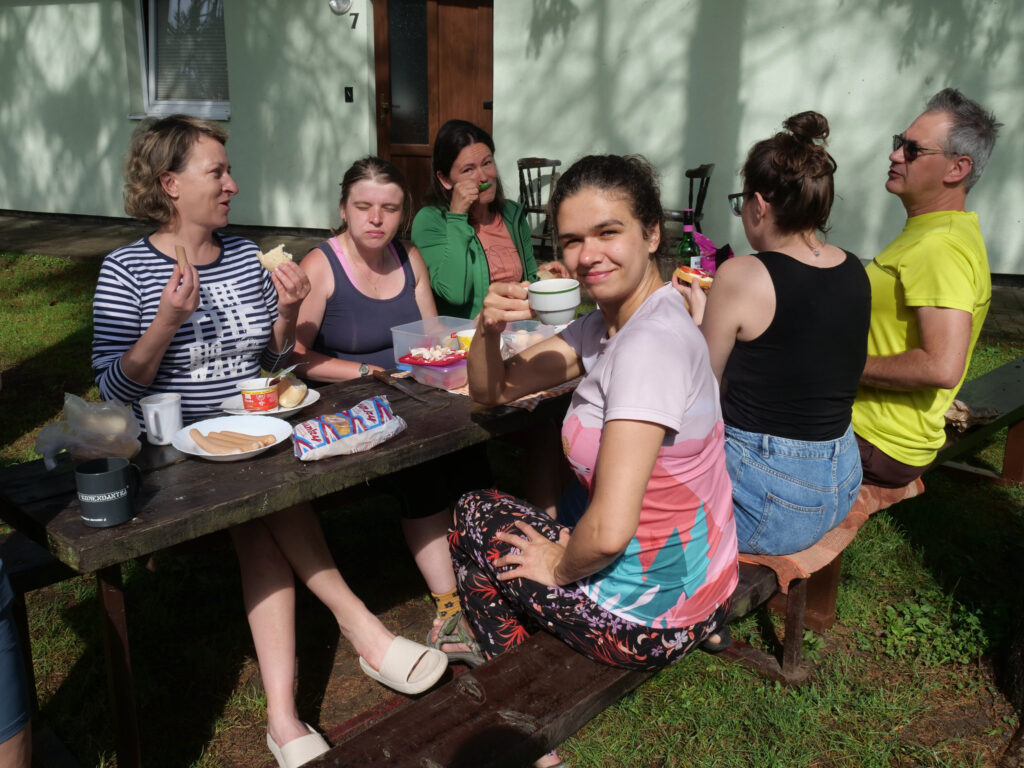 W niedzielę odwiedziliśmy “Czarci Młyn”. Niezwykle klimatyczny budynek z końca XIX wieku pełniący funkcję młyna do lat 50. XX w. W jego wnętrzach znalazły się udogodnienia dla osób z różnymi niepełnosprawnościami. Pani przewodnik z wielką pasją i zaangażowaniem opowiadała nam o historycznych zawiłościach tego miejsca, urządzeniach oraz technice wypiekania chleba. Niemal wszystkiego mogliśmy dotknąć, a nawet spróbować paru kromek ze smalcem, bądź masłem. Co więcej, istniała możliwość zakupienia paru bochenków. Po zwiedzaniu, no cóż, pora pożegnań i w drogę. Droga powrotna przebiegła równie sprawnie i szczęśliwie. Wyjazd dobiegł końca, ale w głowie zostaną wspomnienia, które łatwo mi będzie przywołać, gdy spojrzę na pamiątkowy magnes kupiony w Czarcim Młynie.